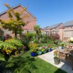 The rear garden has been wonderfully landscaped to create a relaxing and colourful space, with a patio area for seating and lawn with flower beds, trees and shrubbery.